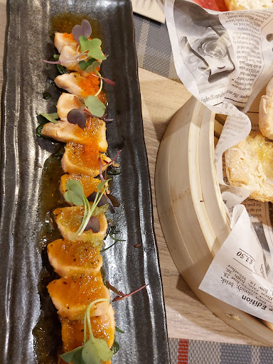 Read moreReservamos para comer 4 adultos, en este amplio local. Nada más llegar nos presentaron la carta y el menú degustación que venden como una buena opción y como lo que más demanda el público. Nosotros finalmente optamos por pedir los 4. Comenzamos con pan de cristal (no estaba crujiente) con alioli y tomate con jamón serrano, cuyo sabor no estaba mal. Luego paté de salmón, muy especiado para mi gusto. Continuamos con un rollo de carne de pato con trozos de carlota. Después llegaron las costillas de cerdo a la japonesa, con una salsa de fuerte sabor, servidas en un bol para cada 2 personas. La carne estaba tierna. Luego llegó el huevo a baja temperatura, aunque estaba templado cuando nos lo comimos. El plato estrella es el arroz al horno con pulpo y tomate seco, servido en unas llandas para 2 personas. Arroz bien cocido, pulpo tierno y tomates de calidad. De postre 1 torrija y 1 coulant de chocolate para cada 2 personas. El precio es de 22,50 € y no incluye nada más que lo que he indicado. La mesa tenía unas aceitunas cuando llegamos. En resumen, sirven todos los platos para compartir, ninguno es individual. Esto más las bebidas y 1 café que tomamos subió la factura a 100 €. La relación calidad/precio es justa, el servicio muy bueno y eficiente. El local amplio, decorado con muy buen gusto y la disposición y separación de las mesas nos encantó pues hay bastante intimidad. Ubicado junto un minicentro comercial que hay en Alcoi que dispone de...