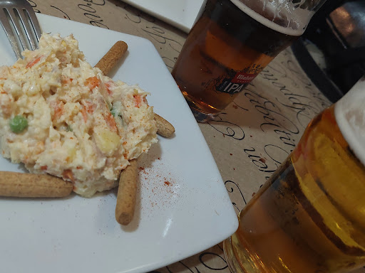 Read moreBuenas tardes , sabado por la mañana mi pareja y yo decidimos almorzar en la terraza del bar. Dos medios bocadillos, un plato de aceitunas para beber agua y tinto de verano. El servicio fue correcto ni muy lento ni muy rápido en su medida por la gente que había. Los bocadillos el pan caliente y crujiente , el mio de lomo fresco ,con queso ,tomate y mayonesa, tamaño perfecto y el lomo tierno y de buen tamaño, un bocadillo tan fácil pero con dificulta ya que muchos sitios el lomo para seco y pasado y el pan chicloso. El de mi mujer queso fresco con salmón, muy buena cantidad tanto de queso como salmón. Remate con un cafe solo. Un sitio totalmente recomendable tanto para almorzar, comer o cenar sus 30 años...