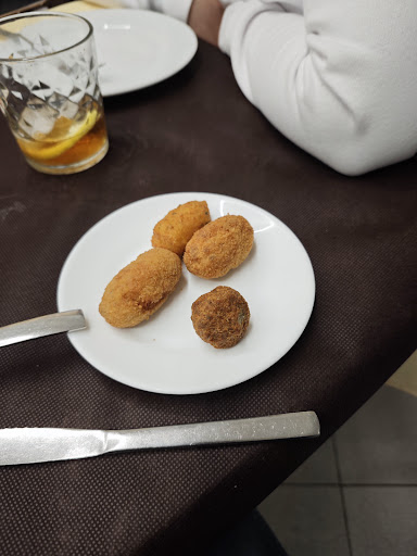 Read moreQue no os engañen con lo de restaurante, es un lugar para picar de carretera, las cantidades de los platos eran penosas, fuí con mis dos mejores amigos, pedimos patatas bravas, ensaladilla para tres y yo me pedi un surtido de croquetas que era una racion ridicula. Mis amigos se pidieron de principal carrilleras e idem de lo mismo. El sabor de la comida era rico si, pero el servicio pésimo mas de media hora para un simple platillo de ensaladilla para 1 me parece que nos estaban tomando el pelo y la racion de 3 pues lo mismo deplorable, el trato pues habia un chico que hacia lo que podía pero la verdad deja mucho que desear, caras de zapato y repetir 800 veces lo que queríamos. Precio excesivamente alto para lo que comimos 17 pavos pagué por todo lo que me 'comí' por decirlo de alguna manera ya que el resto del dia pasé hambre. En fin nosotros no volveremos. No recomendado excepto que no os quede mas remedio como nos pasó a nosotros o que te de igual el trato y que tarden mas de media hora en servirte unas simples tapas cuando ni tan siquiera el local...