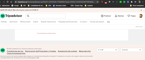 Esta opinión es sobre una nefasta experiencia que recibimos hace unos meses y que a continuación os la detallaré. Pero antes, quiero remarcar, que realicé una reseña en TripAdvisor hace unos meses, la cual ha sido borrada por el dueño de la CAVA (adjunto fotos de la eliminación de mi reseña), para que de esta manera, quede constancia y se haga eco de que la mayoría de las opiniones que están publicadas en Tripadvisor, e incluso en Google my Bussines puedes reportarlas (pero tiene que estar justificado), están MANIPULADAS!