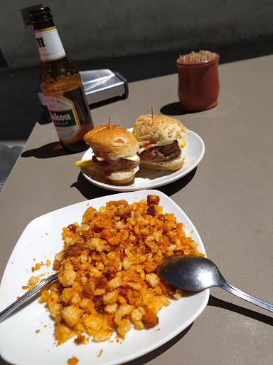 Bar muy familiar, con amplia terraza. Aperitivos ¨modestos¨, pero en gran cantidad y variados. Carta de raciones pequeña, con tostas, diversos fritos (a destacar que las patatas que acompañan cualquier racion, no son congeladas) y bocadillos. Todo a un nivel aceptable y muy muy abundante. El trato es inmejorable, como si te conocieran de toda la vida. Esa manera de relacionarse y alternar con el cliente, siempre da ganas de...