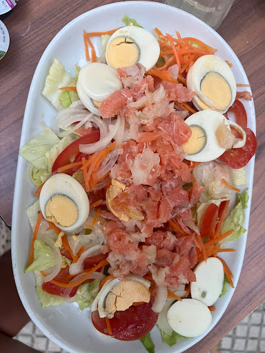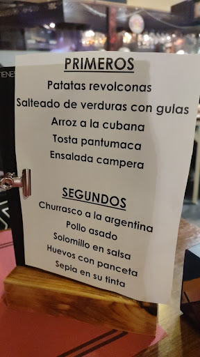 Read moreNunca había probado un vino tan malo en mi vida, supongo q será un sitio para cerveza solo, pero si lo dejas enterito al menos q el camarero pregunte si le ocurría algo. Otro día nos sentamos fuera, nos atendió una chica, todas las mesas tenían aperitivo y a nosotros nos puso un plato de patatas de bolsa, pensamos, se acabó aunque era la 1, se sienta una mesa al.lado y le pone aperitivo...nos quedamos...bueno será un despiste, segunda ronda y ya no nos pone nada. No le gustaríamos, no creo q volvamos. No me gusta poner calificaciones bajas sobre todo cuando está es así por el servicio, cosa q no tienen culpa los dueños ni la cocina, creo q con un mejor personal solventara todas las...