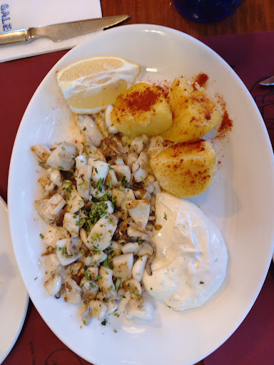 Mi amiga pidió tempura de merluza... espectacular...!! Super ricas, muy bien cocinadas y se nota que el pescado es muy fresco. Estaba acompañada de una salsa, y una ensalada de berros muy sabrosa, también, con los ingredientes muy frescos. Además de un cuarto de limón, que es un detalle que no tengas que pedirlo. Yo pedí chuletillas de cordero lechal....si la tempura de merluza estaba espectacular...las chuletillas estaban ESPECTACULARES...!!(con mayúsculas) eran de cordero lechal, lechal, super tiernas y muy, muy sabrosas, vinieron acompañadas de patatas fritas, que, para mí, han sido las mejores patas fritas de toda mi vida...y mira que he comido patatas fritas, pero...que buenas estaban estaban...muy bien cocinadas...en fin...me quedé sin palabras....en serio, si os gusta ese plato, tenéis que probarlo en este lugar. Además en la bandeja, vinieron dos pimientos, creo que eran de Padrón, también muy muy buenos. De postre pedimos la tarta de la abuela, qué maravilla...!! que rica...!! y muy bien presentada. Al igual que todo lo que pedimos muy bien presentado. Muchas felicidades a todo el equipo que nos ha atendido, al que está en cocina, al que esté encargándose de comprar esos productos tan frescos y con tanta calidad y para todos sus responsables. ENORABUENA...!! Por favor, no cambies nunca de hacer de esa manera la cocina y de tratar así a la gente. Nosotros volvemos seguro. Muy, muy, muy...