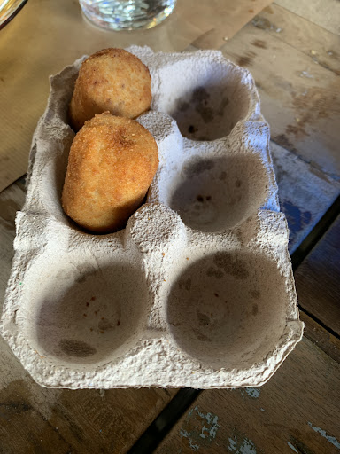 Read moreQue horror de experiencia! Entramos 6 personas y al no ver a nadie buscamos sitio para sentarnos y de repente nos gritan "¿eee cuantos sois? " desde el otro lado, le decimos que 6 que nos manda a una mesa alta. Nos sentamos y nos indica que pidamos la bebida y piden todos menos una persona y se va sin preguntar tuvimos que decirle lo que faltaba. Nos trae la carta y unos precios... Que decidimos pedir solo 4croquetas y unos tequeños en lo que llega la bebida, las cervezas ninguna con vaso, pero es que la tónica tampoco, pedimos un vaso para la cerveza y nos trae 3 vasos con hielo.. Tuvimos que pedirlo de nuevo hasta que nos trajo un vaso para cerveza. En esto llegan los tequeños y las crocretas, los tequeños sabían a haberte metido una cucharada de harina en la boca y la salsa era un caldo dulce no sabemos de qué porque nadie nos lo dijo ni lo ponía. Y las croquetas a 1,7 la unidad eran pequeñas bolitas congelas de masa. Muy decepcionante todo, pero es que para rematar mientras nosotros manteníamos conversaciones, de repente aparecían brazos quitandonos platos, servilletas y vasos que ellas consideraban vacíos pero que ni lo estaban, interrupiendonos constantemente. Resumen jamás volveremos ninguno de los 6 ni nadie...