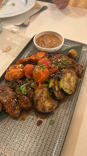Restaurante muy cuidado con una carta muy rica y sorprendente, cuidan mucho el detalle en todo, en la elaboración, la presentación, el servicio...la fusión de los sabores es muy rica. Probamos las vieiras, las brochetas de pollo, los rollitos de rabo de todo y una bandeja de piezas de sushi, la verdad es que todo riquísimo, por mi parte destacaría las brochetas de pollo, tienen un sabor y textura especiales, las vieiras al principio parecen saladas pero cuando se hace la mezcla de sabores en la boca es cuando se nivela todo, es un sitio para repetir, tienen el detalle de ponerte un aperitivo caliente mientras esperas que sirvan, había mucha gente para tomar algo en barra y se veía que elaboraban las tapas al momento. Un lugar para repetir, limpio y cuidado,...