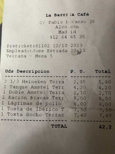 De un tiempo a esta parte, cada vez que voy, y sobretodo la última vez hace nada, recibo una atención borde y Suspicaz por parte del dueño y uno de los empleados, el de coleta Negra grande. Resulta que llego, digo buenos días y pregunto de manera educada si van a poner la terrazas. La respuesta del Dueño con un tono borde y a la defensiva es la siguiente: “Cuando podamos, ahora lo hacemos espera”. Luego me sirven un café con leche con un vaso de Hielo de Mala manera, derramándose un poco de Café, el cual por cierto era muy malo, bastante aguado y sin ningún sabor el cual por cierto pagué religiosamente, aunque para la siguiente vez, no lo haré, de todo se aprende. Inmediatamente después la pregunta de siempre “¿Vas a comer algo?” de manera imperativa, como echando en cara que no gastes más, Si lo quisiera te lo hubiera pedido antes, y para más inri, pregunto por el precio del Café y me responde este mismo camarero, el de la coleta Negra, “Vale como siempre” 1,60, de manera despectiva y chulesca, a la cual respondo que no tengo porque acordarme y más si cabe que el café es bastante Mediocre para no volver. En resumen, se está creando y una Atmósfera muy mala en la hostelería, en general, debido sobretodo a la crisis, y al abusivo pago de impuestos que les hacen pagar a los Autónomos, lo cual empatizo, entiendo y estoy de acuerdo, pero en lo que no estoy en absoluto de acuerdo es en el trato Chulesco y malo de este, y otros muchos sitios. Yo no tengo ninguna culpa de todos estos problemas. Al cliente hay que tratarlo bién, si no, no vuelve, como es mi caso en este sitio. Respuesta Barrit@ de Adri: Si las fotos son de hace un año aproximadamente, se debe a que es una reseña editada, cuyas Fotos que mencionáis pertenecen a esa primera edición, las cuales, tras editar la reseña,...