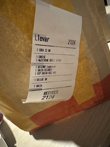 El día 8/06/2025, realicé un pedido para llevar en su establecimiento, el cual incluía un Big Mac Doble Bacon, que según el menú y el importe pagado, debía llevar dos carnes. Sin embargo, al llegar a casa y abrir la caja, comprobé que el sándwich solo contenía una carne, incumpliendo claramente con lo ofrecido y pagado.