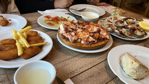 Venerable dining room offering tapas, grilled meat, seafood platters & classic Galician dishes.