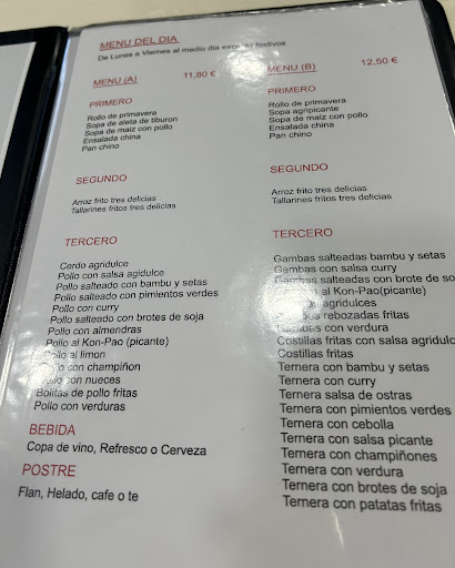 Read moreLocal lúgubre estilo años 80 y da impresión de poco aseado. Lo más curioso es que ya a 200 metros te llega ese olor a fritura que tira de espaldas, ya te plantas en la puerta y ves esa especie de mural en la ventana con fotos de niguiris, makis y sashimi... en la carta platos tailandeses, bueno solo porque pone tailandes al final... te preguntas? Este resta no es chino? 🤔 Bueno pasemos ahora a la comida que definire con una palabra DESASTRE los entrantes elaborados días antes congelados y des congelados, el relleno que debería ser algo jugoso y sabroso en boca se convertía en una especie de albóndiga seca, dura de aspecto grisáceo que se escapa de esa mass bao . El pato asado estaba frío, pasado de cocción y de nuevo algo hecho dias antes y congelado acompañado de una salsa de ostras de bote en un cuenco. En fin... resultado toda la noche en el baño... Malo a rabiar, carísimo para comer una quinta gama con procesos de abatimiento y congelación dudosos. Una experiencia que no...