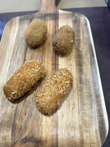 Croquetas de rabo de toro y cecina de buey (2,5€/unidad). Personalmente me gustó más la de cecina que me pareció espectacular pero ambas tenían un buen sabor. ⭐️⭐️⭐️⭐️.