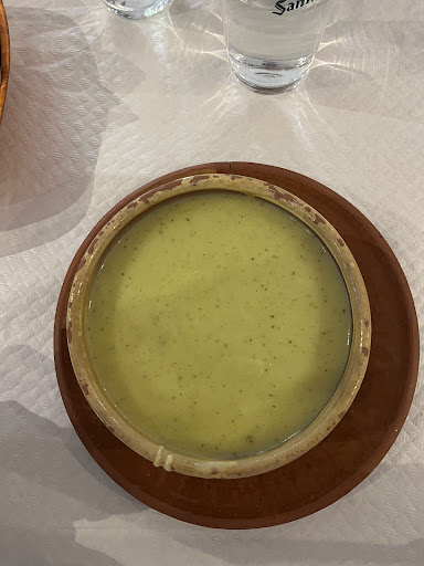 Te ponen una jarra y platos de barro, que dan una sensación a la cocina de antes. La verdad que esta muy bien con un precio calidad super recomendable, hay que tener en cuenta que es un sitio sencillo con buen menu casero calidad precio, no se puede se exigente y pretender que se te trate como si se estuviese comiendo en casa Lucio, que hay gente que espera trato reverencial en sitios populares.