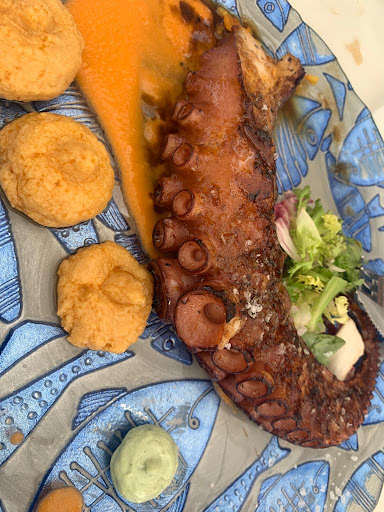 El resto de la mesa pidió pulpo, rabo de toro, etc y la calidad de los platos era impresionante. Según comentaban, ni en la playa, en sitios especializados, se habían comido un pulpo como el que les pusieron en La Ruta de Lorca. También pidieron foie con huevo y tostas y lo preparó en la mesa el mismo Juan Diego (hijo) con una profesionalidad y una gracia incomparables.