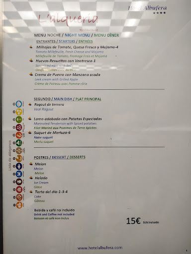 Ce restaurant ne mérite même pas une étoile. La cheffe de service est exécrable. L'entrée est basique salade verte avec des restes de saumon et soupe en brique, les plats principaux sont du décongelés et dégeulasses, desserts premier prix melon et glace, petit pain dur comme de la pierre. C'est la première fois de toute ma vie que je mange aussi mal et en plus ça coûte 15 euros le menu... Si c'est pas du vol ça. On est bien loin de la paëlla et des tapas Espagnols. Ce restaurant fait tâche à la cuisine Espagnole, c'est une honte. À fuire! Un bon conseil : ne réservez jamais les demi-pensions aux hôtels et appart hôtel d'Albufera. Je fais appel à Norbert commis d'office et Gordone Ramsay pour qu'ils passent par là et redressent ce restaurant......