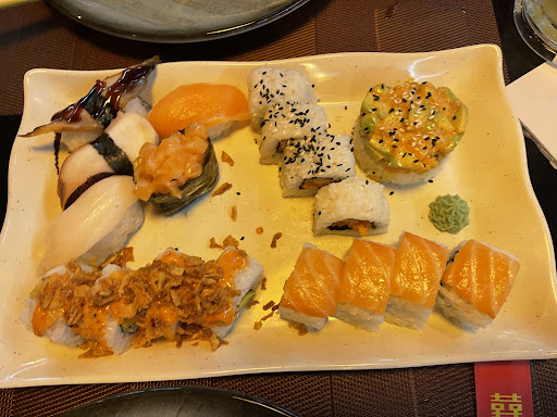 La verdad, juego con ventaja al escribir la reseña porque es un restaurante al que solemos venir bastante cuando queremos comer buen sushi. Hoy, no hemos faltado a nuestra cita habitual y hemos podido ponernos hasta arriba de un buen sushi, rolls, niguiris, tartar de salmón, etc…TODO FRESCO. Obvio. Si no, no vendríamos tan asiduamente, y como bien he dejado entrever antes, es uno de nuestros favoritos! La separación entre las mesas es más que correcta. Para que se me entienda, el local por dentro es bastante grande y lo han sabido aprovechar de buena manera para que prime más la comodidad de los clientes, que el meter mesas embutidas por metro cuadrado para hacer caja. Sensación por otro lado, que suele ser la típica en muchos restaurantes. Ya no solo en lo que a buffet se refiere sino de cualquier tipo. Y en los que no puedes ni entablar una conversación sin dejar de hacer partícipe al resto de mesas contiguas. Si te gusta comer tranquilo/a, y que el producto (salmón/atún) sea fresco este es tu sitio. No hay que darle más vueltas! Eso sí, has de entender que como el 99% de los buffet la bebida te la cobran aparte. Pero vamos, que por un precio bastante razonable te pones hasta las cejas de Sushi del bueno y a la carta. También tienes entrecot, Pato Pekín y muchos otros platos más. Leo los comentarios que pone algún/alguna más abajo y a ver, la opinión de cada cual es respetable. Totalmente de acuerdo en eso. O en que si en lugar de postre, pides una manzanilla no te la cobren. Vale, puede ser. Eso es un punto que pueden mejorar. Pero quitando eso, tampoco puedes esperar que por ser buffet les entre que hasta un ubber les vaya a recoger a casa. En fin, que se...