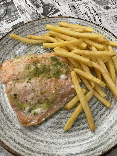 Sitio bien situado en la estación de autobuses. Gran variedad de pinchos, entre semana tienen menú del día. Varios platos a elegir, todo estaba muy rico. Pedimos ensalada ilustrada y arroz de primero y salmón a la plancha de segundo. Destacar que la camarera era seca y considero que si trabajas de cara al público deberías ser más simpática y cordial con los clientes. La costaba hasta responder a...