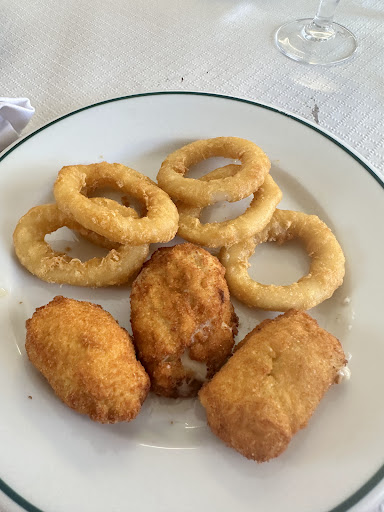 Nos sorprendió que no estuviera por escrito, la camarera te dice los platos de viva voz, lo cual te obliga a memorizar a ti todos los platos, y cuando puede haber 10 primeros y 10 segundos, es un poco lioso, no cuesta nada tener el menú por escrito, con un editor de textos son 5 minutos. Ya que la camarera de al lado dio otros platos que a nosotros no nos ofrecieron y viceversa. Sobre la comida, si bien es cierto que hay casi 10 primeros y 10 segundos, lo que es muy posible que encuentres algún plato q te encaje, sobre la comida decir q es correcta, pero para mi juicio, q es el mío, no es para un menú de 16€. Sobre la calidad de los ingredientes es correcta-buena y la elaboración es correcta, aunque esto siempre depende del plato q pidas, pero lo que pedimos, de 1° las alubias rojas, estaban un poco o muy poco duras, las croquetas y calamares, los croquetas muy buenas y los calamares buenos pero congelados y la elaboración de los fritos muy buena.