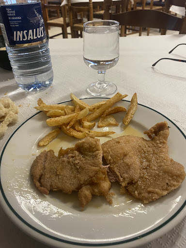 Read moreServicio: poco acogedor, poco servicial, frÃo .. cuantos sois - dos. Sentaros ahÃ, toma tu comida, dame tu dinero. adios.. sin mirar a los ojos al cliente, y no hablo de las camareras/os Comida: cuando a uno le ofrecen canelones CASEROS, espera comer algo bueno y apetitoso. No esperas que te traigan unos canelones frÃos con la pasta pasada un relleno y sabor que da esperanza a los canelones prefabricados de cualquier supermercado, un queso fundido seco, q no se funde por más que después de pedir que me lo recalentaran no se fundÃo . En fin una auténtica plasta q daba hasta manÃa comérsela. El segundo plato escalope con patatas la verdad que mucho mejor, quizás faltarÃa haber dejado escurrir el aceite de ambas cosas pero eso conlleva hacer la cosas con cariño y dedicar un poco más de tiempo a lo que ofreces. Tiempo parecÃa que no tenÃan, o cuencos limpios, cuando he pedido alioli y me han traÃdo un cuenco medio vacÃo, sucio por los laterales claramente usado. Me ha parecido extraño, pero más extraño me ha parecido que antes de que me acabara el plato me vinieran y me preguntaran si habÃa acabado con el alioli. El postre.. pues casero no era, un flan de bote de los más baratos que puedas encontrar. No es de extrañar que fuera del restaurante, en la amplia zona que hay para aparcar coches hay un cartel que diga: Prohibido comer alimentos que no procedan...
