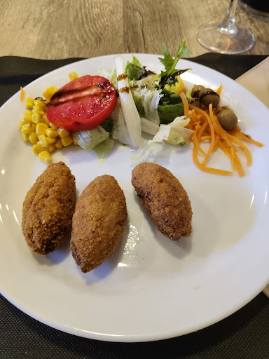 De primero pedí croquetas: venían 3 literalmente (ver foto). Antes del segundo, me trajeron de nuevo las croquetas (se confundieron de mesa: por un momento pensé que querían compensar el error en las cantidades...pero no). De segundo, churrasco. Misma escasez (ver foto). Parecía que le hubiesen puesto el aceite y el perejil de un plato de sepia que tuviesen cerca... qué decepción.