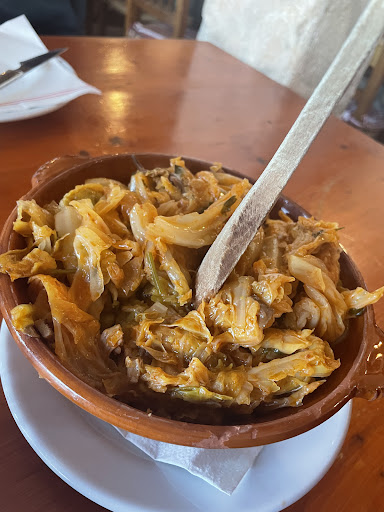 La camarera – de entre 40 y 50 años, con gafas, cabello rizado oscuro recogido en una coleta y de complexión más bien robusta – fue extremadamente grosera. Nos tiró los platos en la mesa y desde el primer momento nos hizo sentir que no éramos bienvenidos. A pesar de que hablábamos en inglés, se dirigía a nosotros todo el tiempo en español, dejando claro que no tenía ningún interés en atender a turistas. Esta actitud se notó durante toda la visita. Jamás me habían tratado con tanta frialdad y falta de empatía.