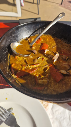 Read morePues en cuanto a la paella estaba buena. Pero como no solamente cuenta eso, debo decir que hemos quedado bastante asombrados por algunas cosas. La primera fue la insistencia machacona de la camarera para que tomásemos algo de entrantes. No fue solo una vez, ni dos ni tres, vino a la mesa hasta cuatro veces a "casi obligarnos" a pedir algo, llegando incluso a preguntarnos que si es que no éramos de probar cosas nuevas. Increíble! Solo por eso, ya no volveremos. Otro asunto que también nos llamó la atención y mucho, fue que las botellas de agua llegaban a la mesa ya abiertas ¡error máximo!. Pero es que además ni estaban muy frías, solo tenían de medio litro y ¡ atención! cada botella nos costó 2,20€. ¡¡¡¡¡¡¡De medio litro!!!!!!!! El resto de bebidas carísimas y ninguna muy fría. Para que os hagáis una idea, trajeron una cerveza y el vaso con un hielo. Creo que con este detalle rocambolesco queda todo dicho. Me parece absolutamente abusivo lo que hemos pagado solamente de bebidas, ese precio es un robo y encima, volviendo al tema del agua, no sabes si es de grifo. Espero que al menos esta reseña les sirva para...