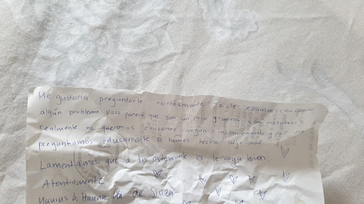 Una vez que pedimos, y nos traen la comida… la pruebo y totalmente INSIPIDA , no sabia a nada!, a lo que me acerco con el plato y le pido que me eche un poco de salsa y una MIJOTA, muy poquito picante.