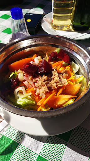 Menú del día bueno, bonito y barato. Viene incluida una cerveza tamaño maceta bien fría, primer plato que yo pedí lentejas y venían con su morcilla y su chorizo súper sabrosas y de segundo carrillada en salsa con su huevo frito y sus patatas fritas. De postre tarta de la abuela. Todo ríquisimo y lo más importante, casero. Pidas lo que pidas te ponen una ensalada nada más llegar y pan y picos. Todo eso 12€. Y el trato del personal muy bien....