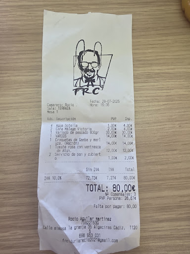 Read moreClavada y robó a mano armada se llama la cuenta. Fuimos a cenar de paso, y menos mal que fue de paso, no nos dio por ver los precios de la carta, ya que al ser un bar de barriada ( haciendo referencia al entorno y las vistas), como te vas a imaginar lo que te cobran por ración, por lo que pedimos una ración de gallos y otra de calamares . Brutal, sigo en shock, vino la cuenta y 26€ la ración de calamares y 20€ la de gallos, ni recién pescado y puesto en mesa me han cobrado eso a pie de playa, la calidad que tiene la comida la solapa el precio y se me olvida en cuanto pago, vaya engaño. Esta claro que ni lo recomiendo, ni volveré. Una vez me...