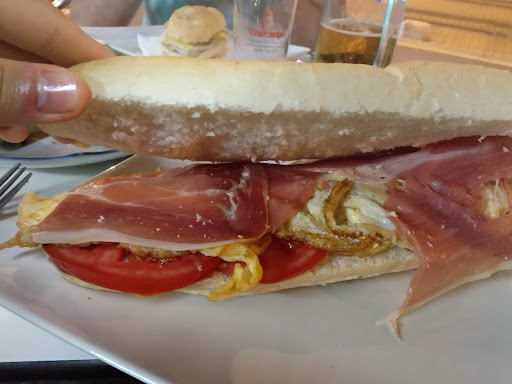 Read moreTenían muy buena pinta los bocadillos, lamentablemente no pudimos probarlo estaba lleno, pedimos dos almuerzos o bien para comer en terraza o para llevar, pero OJO no porque queríamos es que no había espacio dentro, la camarera nos dice que para comer en terraza no puede ser almuerzo que el precio tiene que ser por separado! Esto no lo he visto yo en la vida, nos hemos ido sin comer, entiendo que la pobre chica está agobiada por tanta faena pero el cliente no tiene ni tener un mal servicio…