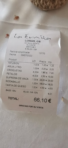 Read moreNo trip to Algorfa is complete without at least one meal at La Ermita. The food is consistently high quality and beautifully presented. You get what you pay for. We always opt for starters as tapas, rather than the meat and fish dishes. The house salad is...