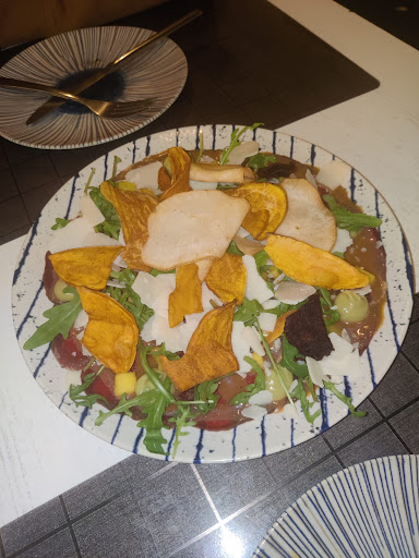 Read moreNo aporto fotos por lo que voy a tratar de describirlo lo mejor que pueda. Situado en pleno centro del pueblo, a escasos metros de la plaza San Sebastián, nada hace indicar lo que se esconde tras la pequeña fachada con el logo del restaurante. Al entrar, el primer espacio del local lo ocupa la barra y unas cuantas mesas; muy bien ambientado y propio para tapear. A continuación se accede a un acogedor patio con una decoración original, fresca y alegre; es espacioso y las mesas están bien separadas. Tiene un encanto que trasmite serenidad para disfrutar de la comida y pasar una buena velada. El servicio, empezando por Fabio, es excepcional. Muy amables y competentes, resuelven cualquier duda sobre la carta, siempre atentos y rápidos; en esto, incluyo al personal de cocina, pues a pesar de estar casi siempre lleno (esto es buena señal) los platos los sirven rápido y a tiempo a todos los comensales. La carta es amplia, variada y bien organizada; no es muy extensa, lo que mejora la calidad. Tiene oferta también para veganos. Los platos son originales, elaborados, bien presentados y están buenísimos, con una buena relación calidad-precio. Hay propuestas para compartir, pudiendo pedir medias raciones y así degustar más variedad. Como recomendación sugiero pedir de entrante las croquetas del día; siempre son distintas, muy cremosas y ricas. Sugiero dejar un huequecito para alguno de los espectaculares postres, aunque sea compartido. Para los amantes del chocolate “la muerte por chocolate blanco” está de muerte. Por último, aconsejo hacer reserva previa, ya que como he dicho anteriormente, suele...