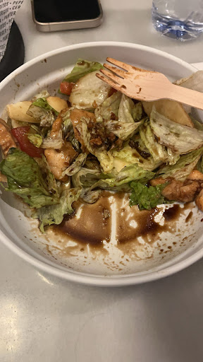 There was a lot of things we did not like with this spot. First of all there was not available utensils, except the wooden fork in the salad, other than that only small wooden spikes were available and they were really useless. In addition to that the plates we got were wet and the napkin on top was soggy. One of our plates was also just taken away from us without any dialog being exchanged. ALSO The pizza that was ordered came as a sort of toast instead of the actual pizza that we saw a picture of. And definitely, the worst thing was the salad we were given. This salad was absolutely drenched in a what looked to be balsamic glaze that wasn't very tasty. The salad was also clearly not fresh as well as the tomatoes that were soggy and tasted like nasty onions. The cheese was also cheap and not exactly tasty, and the chicken tasted more like a fish than chicken, and it was rubbery. Overall, it was a pretty bad experience. Would definitely not recommend it. (Sorry for...