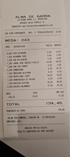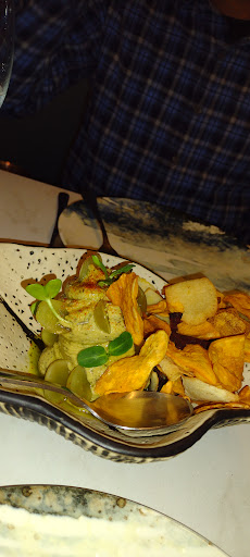 During a short stay in Alicante, our hotel concierge recommended Alma de Barra. The night before our return to the US, we had an early dinner reservation at 8 PM on a Monday evening. We dined inside since weather was damp and just a tad chilly. We sat at a lovely high table in the window in the corner. Our server, Alicia, was very kind and patient with our limited Spanish. She was able to help us understand that cocktails weren't served on weeknights, which was no problem, house wines were fine, and that it was no problem having tapas, sitting for a while, and ordering main foods later. For starters/tapas we had the Pistachio and Basil Hummus and the Croquettes of the Day (Fish and Kimchi). Both were wonderful...the Hummus was amazing! The vibe of the restaurant was laid back and cool, not quite as casual as a typical tapas bar. It was obvious that Alma de Barra was above average, it all the best ways. We order the salmon and grouper for our main dishes. The freshness of the seafood really stood out. The sauces with the salmon were a flavor explosion! The Bearnaise sauce with the grouper was very subtle. We asked Alicia for a dessert recommendation. The Mango Sorbet that she suggested was a fabulous, sweet and tart end to a wonderful meal! The chef at Alma de Barra is very talented. Go for a combined-culture culinary experience and...