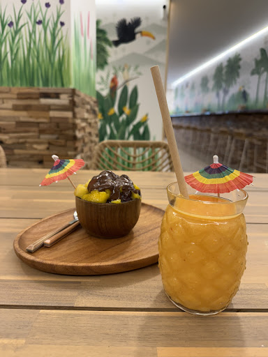 El mejor sitio para tomar açai. El precio está genial para la cantidad y la calidad de los ingredientes. Los bowls son MUY abundantes en ingredientes, la fruta siempre está fresca y tienen gran variedad de toppings, además, super importante para mí, tienen opciones veganas y sin gluten. Como puntos negativos. Por un lado, estaría bien que tuviesen más toppings veganos, pues solo puedes ponerle fruta. Las pepitas de chocolate llevan leche, la salsa de maracuyá lleva nata, luego los yogures son de origen animal. Aun así, a mí me flipa la combinación del ENERGY BOWL, que es vegano de por sí, pero por variar un pelín estaría bien al menos alguna salsa más vegana y no solo la crema de cacahuete.También destacar como negativo que la opción sin gluten que sustituye a la granola son copos de maíz y en lugar de listarlo como un ingrediente diferente, justo debajo de "granola" pone simplemente "opción sin gluten" y tú te crees que te van a poner una granola sin gluten cuando te vienen unos cornflakes. Además, solo te dejan cambiar un ingrediente de los açai del menú, siempre por otro de la misma categoría. Es decir, una salsa por una salsa, una fruta por otra fruta, etc. Eso sí, como pidas lo que ellos llaman "granola sin gluten" (cornflakes) en lugar de "granola normal", ya no puedes cambiar ningún ingrediente más. Esto limita muchísimo a las personas con intolerancias. En otro Amazonia de Madrid no he tenido problema haciendo más de un cambio de ingredientes, incluyendo el cambio de granola. Aquí, pues depende de quien te atienda xD.