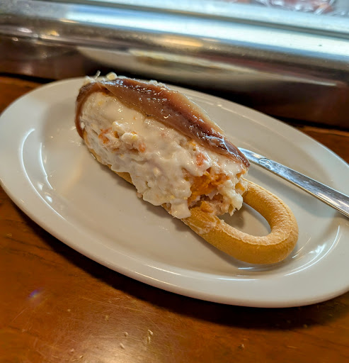 Read moreGenial! SĂ, la gente dice que es caro o que para el precio que tiene sirven poca cantida. Tonterias, tonterias de las grandes. Âżque esperas que te sirvan? Si el producto es de primera calidad, de Mercado, con mojama, calamares de primera, nada de congelado no como en el 90% de los bares, hueva, gambas frescas al dia, pescados igual... que quieres? que por 2⏠te incluyan caña y tapa? Se esta perdiendo el sentido comun... ya solo la cerveza es mahou es de barril y la gama especial cosa que pocos bares tienen. Los postres son muchos de ellos caseros hechos alli... estan bajados justo lo que se puede para ganar algo asi que es el precio justo, si el producto es caro el precio debe ser caro :) Asi que no temais por la calidad y pediros sin falta ensaladilla, pisto, croquetas, calamares, jamon, aspencat, bravas (salsa casera tambien, y las bravas pican, como debe ser!) y queso curado o gouda viejo.