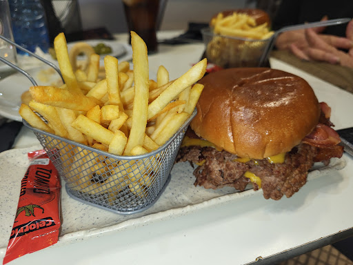 Comida excelente, tanto las tapas como las hamburguesas, el camarero (muy majo por cierto) nos recomendó una hamburguesa de fuera de carta que tenían nueva, la probamos y nos encantó a tod@s!! Nos gustó mucho el detallito de poner las patatas en una cestita metalica como de una mini freidora. Tiene terraza para comer fuera para los fumadores, algo importante para algunos jejeje. Se puede aparcar fácil en la misma carretera donde se encuentra el local, y sino también hay un descampado enfrente para aparcar cerca y cómodamente, hemos ido varias veces ya, no es caro, tiene unos precios normales y la verdad que si vas es raro que no repitas, muy...