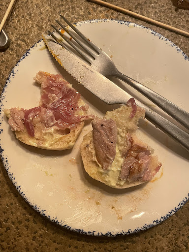 Los entrantes escasísimos, misma cantidad para 2 personas que para 4, éramos 15, pues echad cuentas. Y los principales ni hablamos, las entrañas salimos a un diente.