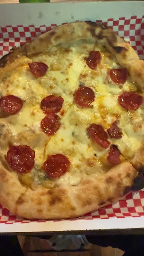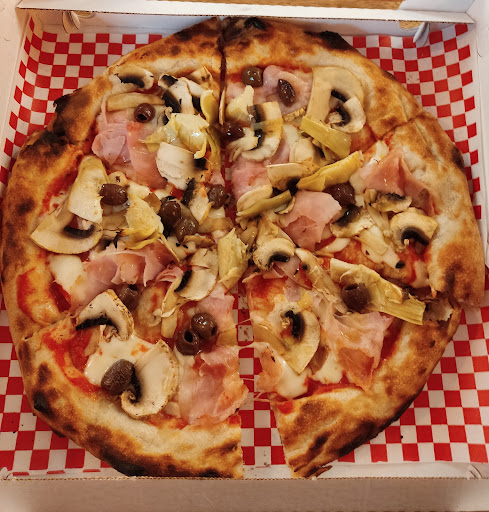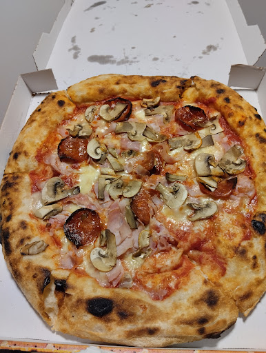 Iba a subir fotos pero... Me pudo ansia. Pedimos dos, pistacho, mortadela con la burrata entera, ahí lleva suplemento pero la calidad/cantidad se paga amigo mío. Y la otra fue la reghina margarita.