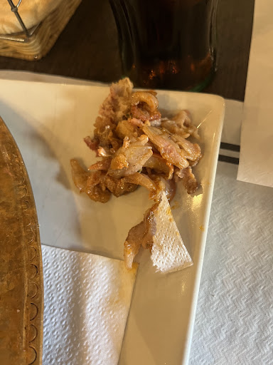 Principales: ─ Incik kebap (1 x 14,00€). 8/10. Es un jarrete de cordero que envuelven en láminas finas de berenjena y hornean. En definitiva es un cordero asado diferente, de una pieza que me encanta y todo el conjunto está delicioso. A mi me parece que por 14€ la ración es un poco escasa, ya que una vez se quita el hueso la cantidad de carne que queda es poca. ─ Iskander kebap (1 x 13,00€). 8/10. Son como tiras de carne picada de ternera que se sirven sobre trozos de masa de pizza (o similar) y todo ello con abundante salsa de tomate. Muy rico y entre la cantidad de carne que es generosa y con el añadido de la masa, la verdad es que es un plato contundente. ─ Karisik kebap (2 x 16,00€). -/10. No lo probé pero es un combinado de carnes a la brasa. Los que comieron dijeron que estaba muy bueno y afortunadamente pedimos para dos en lugar de para tres. ─ Etli Konya Pidesi (1 x 8,50€). 6/10. Este nombre corresponde en castellano a lo que se llama una "pizza turca". Y supongo que se la llama así por la forma, ya que el queso desaparece.... estaba muy sabrosa aunque a mi gusto exceso de pimientos verdes como se ve en la foto.