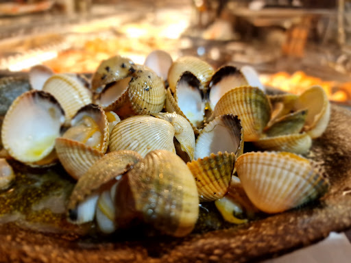 Pedimos Zamburiñas, pero en su su ligar nos pusieron unas Vieiras con un aceitito muy rico (no salsa verde) y muy verde, que estaban riquísimas. Los berberechos, sin un granito de arena, bastante esponjosos, muy ricos y ese eceitito verde tan rico.