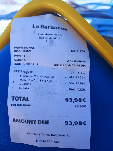 Read moreAfter walking all the way down to McDonald’s , looking for places that seemed full (we believed would be trusted) we turned back and started walking back up Avenida de Niza then we stoppped at La Barbacoa! Wow, what a lucky stop! We had a beautiful wagu burger, my little boy had a lovely fried bones less chicken and chips. We loved it! They even let us charge our phone up