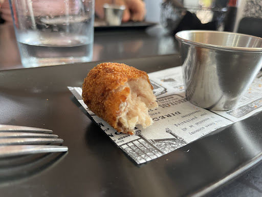 Raciones muy abundantes, con unas patatas en láminas como guarnición que están de escándalo. Las croquetas grandes, muy sabrosas y de nuevo, nada aceitosas. ¡¡¡ Muy muy ricas!!!