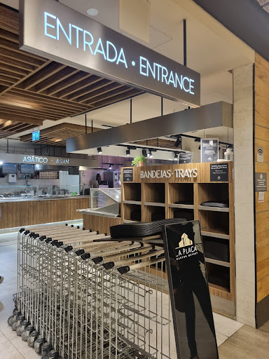 Restaurante tipo buffet ubicado en la última planta del Corte Inglés en el que se puede encontrar diferentes platos para todos los gustos: ensaladas, pastas, pizzas, arroces, sushi, carnes, pescados... así como diferentes postres. Nada más entrar, se coge un carro en el que se ponen las bandejas que necesites y vas pasando por los diferentes mostradores de comida para así pedir la que te apetezca, hay algunas comidas que ya están hechas y simplemente te las calientan si es necesario y otras que te las hacen al momento y a tu gusto como la carne y el pescado. Antes de pasar al comedor, coges las bebidas y los cubiertos, pasas por caja para pagar y luego ya puedes elegir donde sentarte. El comedor es bastante amplio y cuenta también con dos terrazas con vistas, para comer al aire libre. Nosotros éramos dos comensales y pedimos una coca de verduras y unas aceitunas de entrantes, un plato de arroz a banda y otro de verduras, una cerveza y una coca cola zero. Salimos en total a 37'35€. No es barato pero la relación calidad-precio es adecuada y para ir...