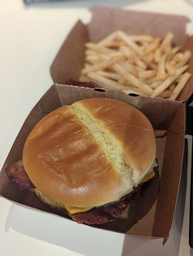 We ordered a extreme bacon sandwich with few other stuff as well as Fanta and a big mac. The beef in the big mac was chewy, with weird string-like texture inside of it that leaves terrible residue in the gums and teeth. The fanta was a watered-down squash of an orange juice with so much ice that wasnt able to be drank. The extreme bacon sandwich we ordered was flat and off looking. After a bite we realised that there was no bacon in the sandwich and after talking to staff to ask what happened he came to us and said there is bacon (there was none). He stormed off with the sandwich and after 20 seconds he came back and threw the box down. He gave us one slice of...