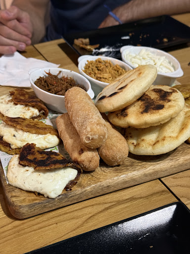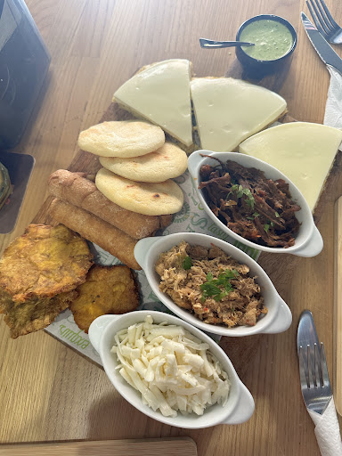 Llegamos un pelín más tarde de la hora de reserva que habíamos hecho, nos atendieron sin mucho entusiasmo ni ganas. El lugar muy tranquilo, no había nadie, después una mesa se sentó fuera y fuimos los dos únicos clientes que estuvimos allí. Tardamos un poco en hacer el pedido de lo que queríamos pero es que tampoco recibimos mucha orientación así que pedimos una tapa que tenían anunciada como ganadora de algo, dos sándwich, unos pequeños y una arepa con pollo mechado con un zumo de mora. Tardaron más de 35 minutos en servirnos la tapa, que me desilusionó al ver que no eran más que dos trozos de plátano montados con salsas y algo de carne mechada con aguacate de pequeño tamaño y algo difíciles de compartir. La chica nos avisó de que eran dos unidades lo que no esperamos tal vez fue que no fueran algo más grandes. El pan de los sándwich parecía sacado del congelador y descongelado en microondas, estaba muy duro, una pena porque lo de dentro estaba muy bueno. Los tequeños eran 3 unidades, hubiera sido un detalle que hubieran puesto al menos uno por cada comensal, que era poner uno mas. En general los platos no nos parecieron ni muy abundantes ni con lo que esperábamos después de tanta espera. Se excusaron en que eran las 15:39 pm y que se habían quedado sin la mayor parte de la carta de arepas y cachapas, por lo que tampoco pudimos disfrutar de lo que queríamos probar. El zumo de mora no estaba muy bueno de sabor y tardaron en servir la comida mucho después de servir las bebidas . A media comida nos cerraron la reja a la mitad, como dejando claro que querían cerrar, la verdad es que ir a comer a un sitio no solo es la experiencia culinaria, que es importante que sea agradable si no el entrar en un lugar y querer repetir por sentirse como en casa. La verdad es que pienso que para comer allí no lo recomendaría, tal vez de ser lo del pan algo circunstancial y las raciones las hicieran un poco más grandes ganarían en ventas y clientela, ahora mismo la verdad es que no puedo calificarlos mejor. El lugar no es muy grande y es algo estrecho, la terraza es semi cubierta, tampoco muy grande. La decoración, limpieza y aseos, correctos. Los precios sin descuentos o...