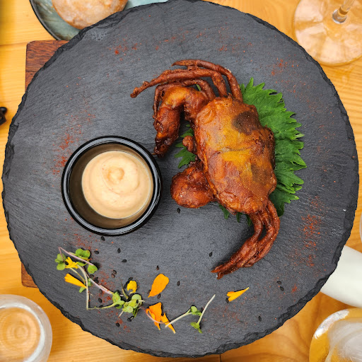 Gorgeous ambiance with much intention in its structure and design. Only design flaw is subjective- I wish the plants were real and less obviously appealing to taking pictures and posting on social media. Appetizers were divine- croquettas were a hit and the whole fried crab with kimchi mayo was very fresh and unique, although the kimchi mayo was unfortunately underwhelming. Paella was too salty, but for good reason according to the waiter; apparently, the way it is cooked with fresh seafood can easily oversalt the dish. The alioli was far too heavy with garlic, but this seemed intentional. Desserts were delicious, although as I am a brownie fan, the brownie was not as fudgy or rich as I would have hoped. The waiter embodied Spanish culture but another was very attentive and offered great conversation and insight to the restaurant. Prices were very reasonable given the size and types of the dishes. Overall, a...