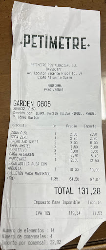 ─ El coste de esta comida fue de 34€ por persona todo incluido y de 23€ por persona sin incluir las bebidas (vino, agua, cafés, cervezas, refrescos, copas…).