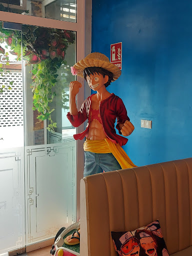 Local - 10: Bien situado cerca del mercado, muy limpio, amplio por dentro con bastante sitio y espacioso, la decoración está guapísima, el mejor que he visto, con un monton de figuras y muy bonito todo y a la entrada proyectan anime en el suelo, muy original eso. P.D. me pareció curioso ver que aceptarán perros en el local y además les daban un cuenco con agua, un detalle muy bonito.