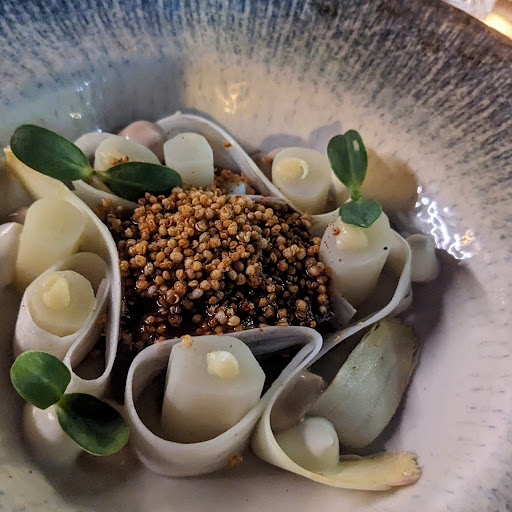 The place is beautifully furnished and each dish looked fantastic, but I personally found that's where all the focus was put; on appearances. No dish tasted bad but nothing stood out to me. I'm personally of the opinion that all the food on the plate must be there for a reason and many of the dishes just didn't fulfill that notion. For example, one dish had a jellied base with four cubes of chorizo. Neither the jelly base or chorizo felt cohesive to each other let alone to the whole entire dish. Another plate had ox tongue that didn't work due to its texture and some pieces of it were just inedible. Another dish had fish and potatoes which ended up feeling all the same texture.