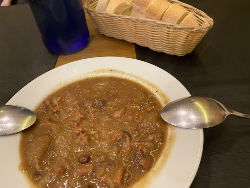 Read moreRestaurante de 10!! Desde el minuto uno, un trato excepcional. Reservamos con ganas de probar el cachopo especial, y no defraudó ni lo más mínimo. De entrada probamos el estofado de calamares, sin palabras, receta de casa, de abuela, de madre… como las de antes, con un producto excelente y una mano de Carmen que hace que cada producto que toca sea una delicia. Como primer plato, unas fabes… vaya fabes… siendo del norte, no habíamos probado por la zona una calidad así… el compango, la faba… en fin, con ese toque asturiano de la cocina que hacen que sean especiales. De segundo plato, un cachopo especial, con ingredientes diferentes, que hace que te sorprenda cada bocado más que el anterior, carne de primera y con la sorpresa en el interior que no queremos desvelar, mejor ir, ver, probar, y por supuesto disfrutar. No podíamos con el postre, pero como detalle nos sacaron unas rosquillas recién hechas que fueron una delicia, todo un detalle por parte de la casa. Dar las gracias por la atención en mesa de Ángel, apasionado por los vinos y que con su experiencia, no defraudara en la elección de lo que allí tiene. Igualmente destacar cómo ya he comentado más arriba, el trabajo en cocina de Carmen, verdadera cocina casera que nos deleita con sabores que nos hacen viajar con cada bocado. Muchas gracias por dejarnos disfrutar de estos grandes manjares, nos...