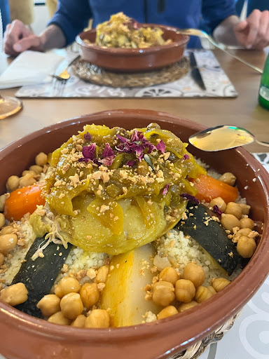 Read moreThis restaurant was unbelievable! We had the lamb tajin with cherries and almonds (the lamb literary fell off the bone), the vegetarian couscous (it came with a broth on the side to pour on the couscous, which was super flavorful), and the filo pastry chicken "pastela" (sweet and savory, supef delicious!!). We also had the baklava and another typical dessert with cheese inside (it wasnt too cheesy though), and the morrocan tea to help digest the meal. Besides the food being excellent, a highlight was our server Ibrahim, who was super welcoming, fast, and friendly. All in all, an incredible dinner, and about 50eur for both of us. It was also open earlier for dinner than...
